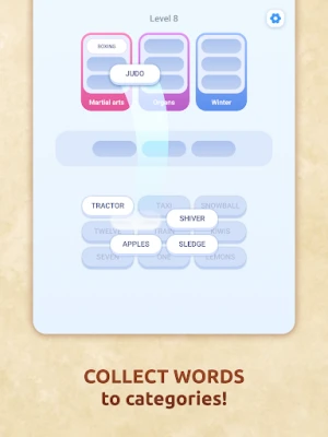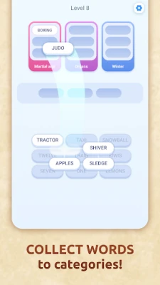 Each level gives you a grid of words. Your task? Sort them into themed boxes.