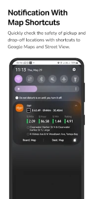 Quickly check the safety of pickup and drop-off locations with shortcuts to Google Maps and Street View.