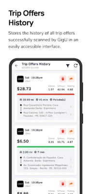 Instantly view trip valuable information like earnings per mile, hour & minute.