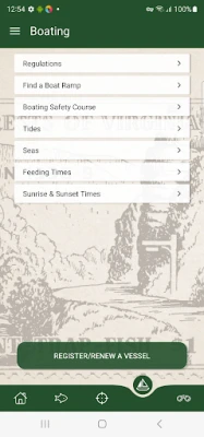 - Store your license on your phone and sync recent purchases - Access to hunting and fishing regulations, season and bag limit information, and state record fish - Access to DWR’s hunting and fishing licensing system: GoOutdoorsVirginia.com - Location based Sunrise/Sunset Timer and Moon Phases - Prime wildlife feeding times - Tides and Nautical weather - Online Game Check and Boat renewals - plus DWR news feeds