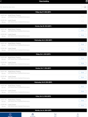 A large variety of fitness classes for you to explore on your health journey. Using our app you can book classes, and appointments and see the schedule. With our app, you have the ability to change up fitness styles throughout the week instead of sticking to one type of workout. So stay in the know about the events of Never Satisfied Performance through our App