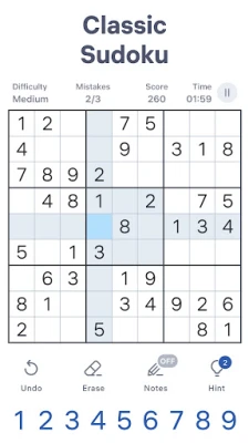 ✓ Turn on Notes ✍ to make notes like you would on paper. Each time you fill in a cell on the sudoku puzzle grid, your notes are automatically updated!